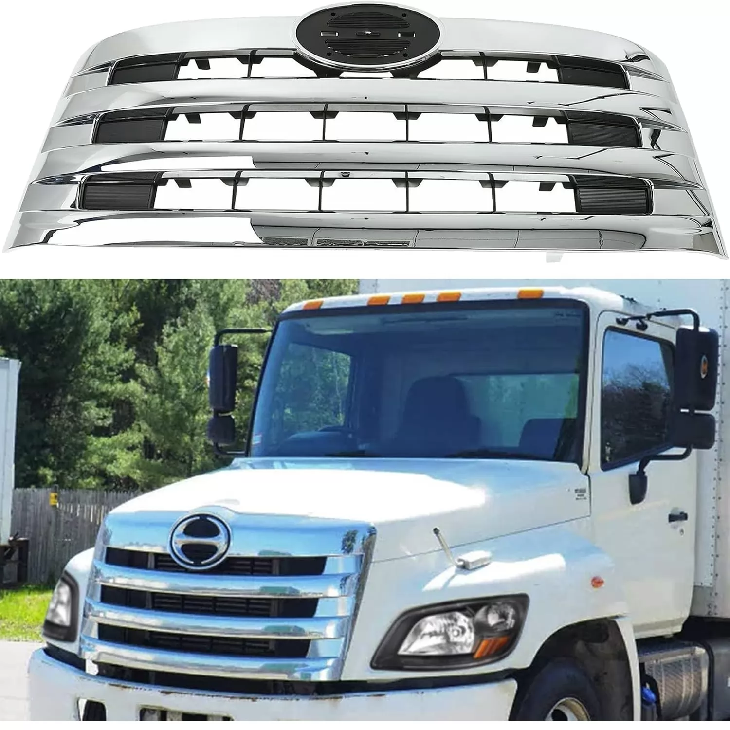 BS-HI-101CH Chrome Plastic Grille Replaces 53100-E0062 & 53100-E0063 for Hino 238, 258, 268 & 338